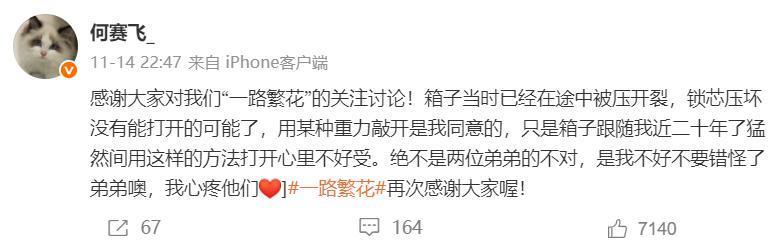 如果我们只看到这一幕,大概率会认为柯淳和邵子恒欺负何赛飞,幸好何赛飞后期进行解释,她之所以哭,是因为舍不得这个箱子,她是一个很节俭的人,这个箱子用了十几年,最关键的是,两位弟弟努力地帮她开箱,这让她非常感动。